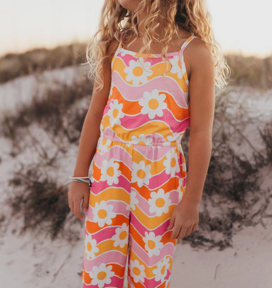 Kids Retro Floral Jumpsuit with Pockets