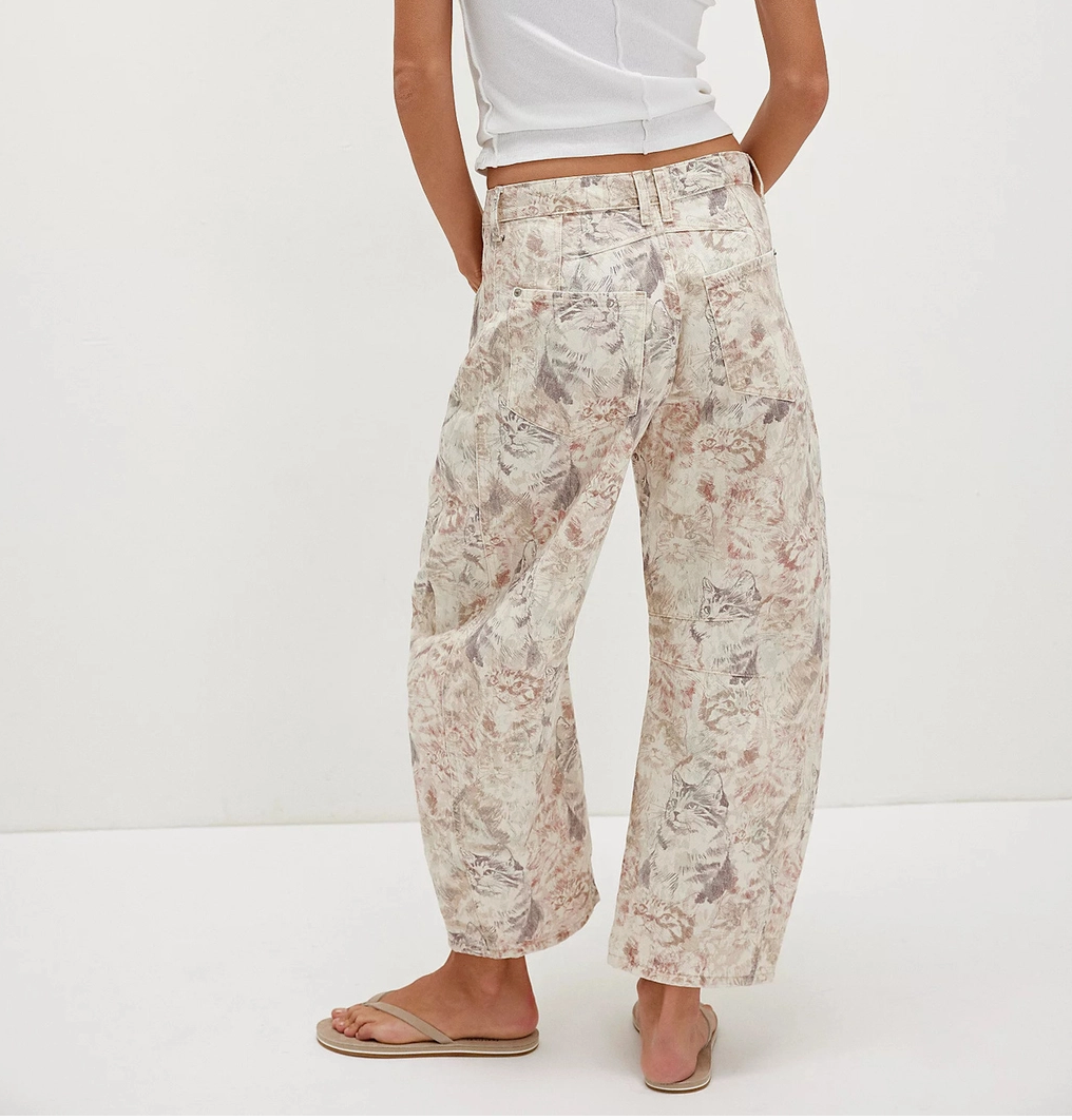 These wide-leg pants feature a subtle, sandy-toned cat print that’s equal parts cozy and awesome.